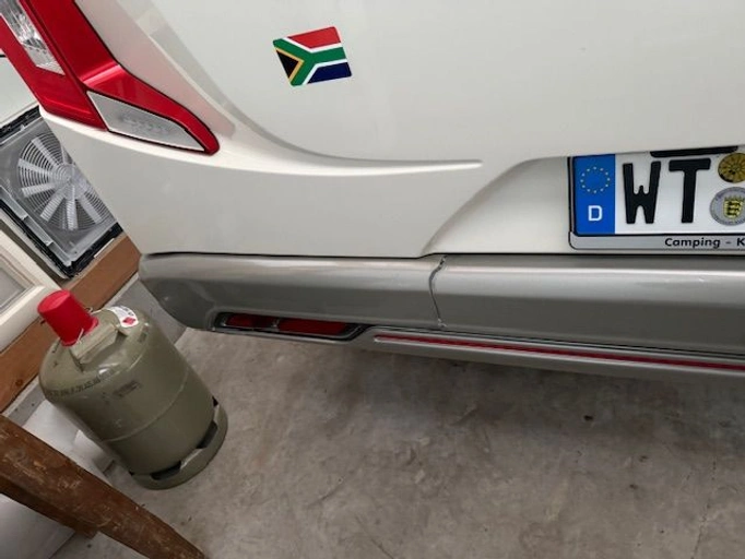 Achterbumper is beschadigd maar gerepareerd