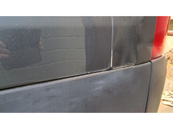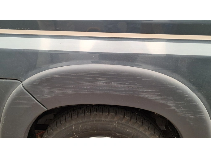 Krassen op de wielkast rechts, verfkrassen achter de wielkast links,