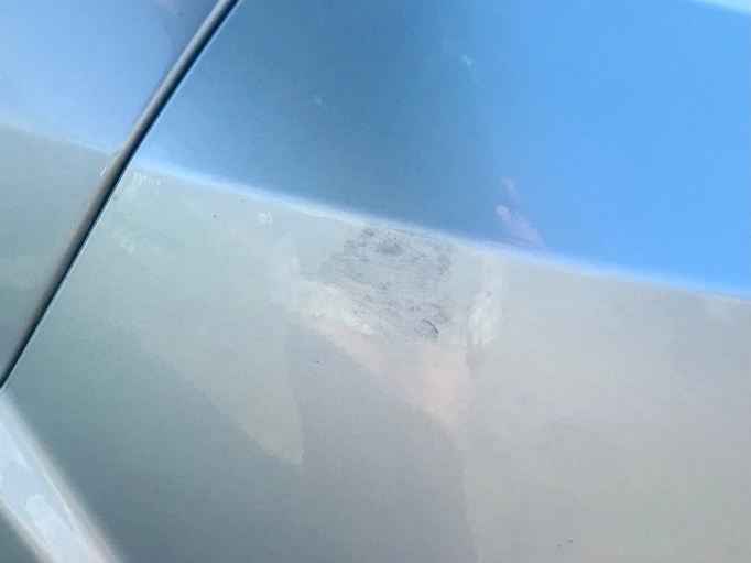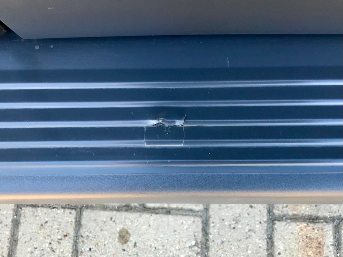Achterbumper heeft een deuk, zie foto. Op de motorkap zit een deukje van de slang van een hogedrukreiniger, niet zichtbaar te fotograferen. Met lakstift rechter voorbumper bijgewerkt, zie foto.