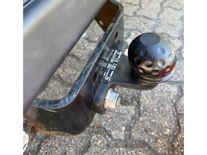 De koppeling van de aanhanger heeft zichtbaar grotere roestplekken.