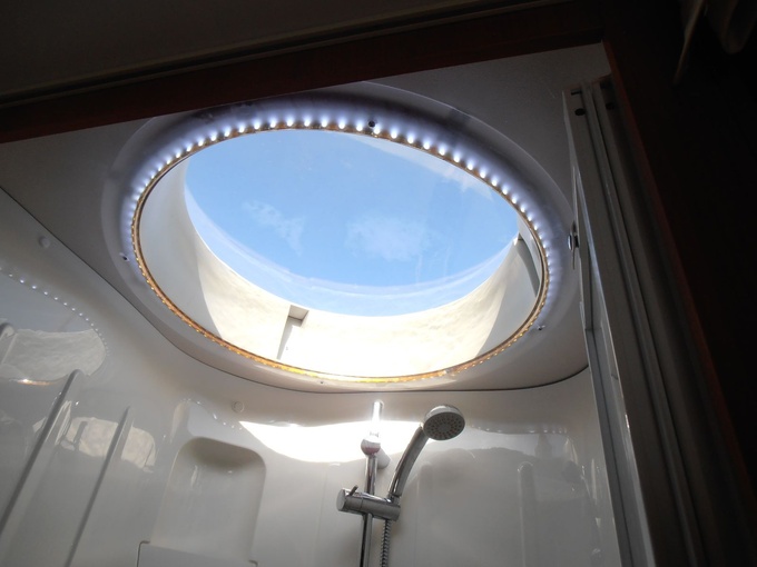 Het omgebouwde raam boven de douche is vernieuwd/omgebouwd, dit is een verandering en geen defect. Het dwarse tweepersoonsbed is omgebouwd tot een bed in de lengte (kan ook weer verwijderd worden).