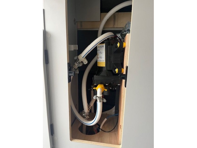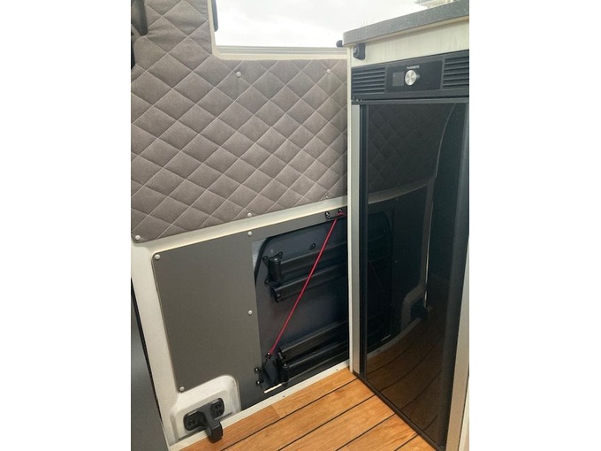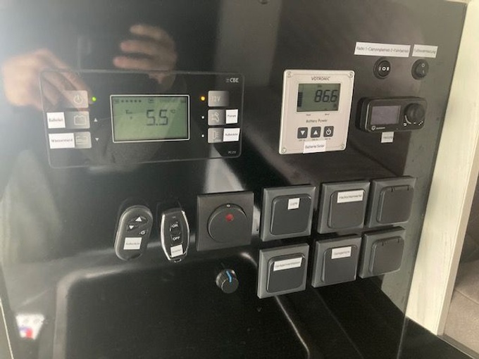 3000 Watt (noodzakelijk als dubbele kookplaat in de keuken wordt gekozen)JaMogelijkheid om motoren, fietsen of andere voorwerpen vast te sjorren en vast te zetten 3x aan de garagevloer (stevig verankerd)Ja1x aan de garagemuren (links, rechts en voor). Verplicht als je kiest voor opbergvakken in de garageJa2x aan de onderkant van het hefbedJaVerwisselbaar 3x opbergvakken mogelijk rechtsJa1 x opbergvak mogelijk linksJaTwee sluitingen, luchtdicht! Natte kleding enz. droogt sneller. Goed tegen condensvormingJaGarageventilatiesysteem (GVS) rechtsachterJa Luchtvering voor achteras, elke kant afzonderlijk bedienbaar vanaf de bestuurdersstoelJaJe kunt je bestelwagen aanpassen aan je gewicht en rijgewoonten, zodat je comfortabeler of sportiever kunt rijden Afhankelijk van het laadvermogen is een nivellering van ca. 4-7 cm mogelijk, zodat je bijvoorbeeld de achterkant van het voertuig kunt laten zakken of optillen als deze iets scheef staat.