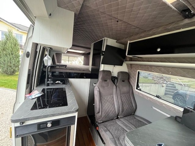 zoals 99% van de seriefabrikanten doen! Gewicht: 38kg Kleur bijpassend bij het interieur, incl. Beker en houder voor koffiecapsulesJaZeer vlak, verduisterd 90x50 cm of 100x50 cmJaSchuifdeur (passagierszijde)JaTafelgedeelte (bestuurderszijde)JaMet rolgordijn en muggengaas (merk: Beddenruimte 70x40 cm alleen achterJaEetruimte 40x40 cmJaRamen van echt glas, aluminium frameJaBestuurderszijdeJaPassagierszijdeJaKies hieronder de vorm van de ramen64cm breed en 12cm hoogJaAutoterm 4KW diesel en elektrische standkachel en boilerJaEettafel voor maximaal 4 personen, afneembaar, voor binnen en buitenJaLifepo4 accu's voor zelfvoorzienend kamperen 300 AhJaKrachtige laadbooster en solarregeling gecombineerd in één apparaat. Tot 5 keer sneller stroomverbruik dan conventionele ladersJaZonnepanelen elk 100 watt vast geïnstalleerd op het dak 100 wattNee200 wattNee300 watt (alleen mogelijk als er geen dakairco of satellietsysteem is geselecteerd)Ja12 volt aansluiting voor draagbare/mobiele zonnetasJaKeukenblok incl. enkele kookplaat (inductie) Enkele kookplaat (inductie, uitneembaar), koelkast 70 liter, gootsteen en kraanJaDubbele kookplaat (inductie, uitneembaar)Ja90 L koelkast (Dometic) kan aan beide zijden worden geopend, keukenblok is dan 7 cm verhoogdJaGemakkelijk schoon te maken incl. 19 liter vuilwatertank (uitneembaar aan de buitenkant) 19 liter afvalwatertank (van buitenaf te verwijderen)Jaso het toilet is absoluut geurloos (zie link)JaClesana praktijktest en vergelijking met andere toiletsystemen vindt u in de video een regel verder naar beneden. https://www.youtube.com/watch?v=08bVxbvN5IM Zwart, zeer elegante leisteenlook. Weegt evenveel als de standaardtafel, maar ziet er zeer solide en hoogwaardig uitJainkl zwarte wasbak en zwarte kraanJaLinks boven de wielkast, waterpomp zit eronder. Afvalwatertank bevindt zich onder het voertuigJaFiltert chloor, fosfaten, zwevende stoffen en slechte smaak tot 3000 liter en is eenvoudig te vervangenJaMuggengaas voor de schuifdeur over de gehele zij-ingangJa3,8 m - 4 m (afhankelijk van de lengte van het voertuig)Ja8cm antenne op het dak, incl. HUAWEI router (geschikt voor alle SMA routers bijv. Netgear M1)JaIm Belangrijk: Sim provider bijv. Vodafone moet geregistreerd zijn voor het voertuig.Informeer bij de verkoper of de data-SIM-kaart geschikt is voor de router! LED-buitenverlichting boven de schuifdeur, dimbaar incl. afstandsbedieningJaBuitenaansluiting incl. slang, douchekop met vergrendelfunctie en zuignapJaExtra brede elektrische opstap bij de schuifdeur incl. LED-verlichting. Laat meer bodemvrijheid over dan de conventionele opstapJaGeïsoleerde matten met magnetische rand voor bestuurder, voorpassagier en voorruit. Hierdoor kan het voertuig volledig verduisterd wordenJaMOBIELE AIRCONDITIONINGKan indien nodig meegenomen worden en aangesloten worden in de garage, koude lucht wordt dan doorgeblazenJaDe normale kantoorairco is inbegrepen, de 220v aansluiting en het gat voor de warme lucht afvoer zijn gemaakt.