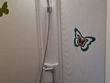 Zeer kleine aluminiumschade boven de garagedeur rechtsachter.